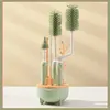 360-Degree Rotating Silicone Bottle Brush Set with Long Handle & Drying Rack
