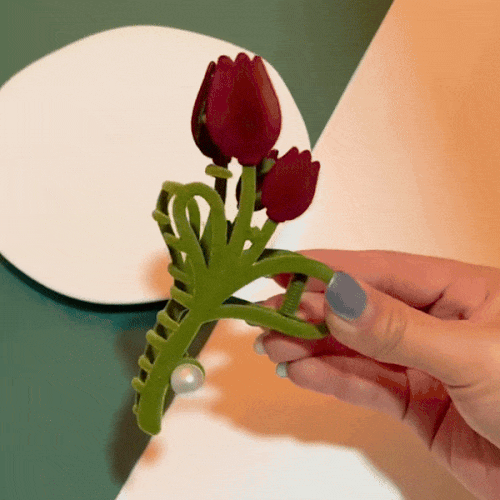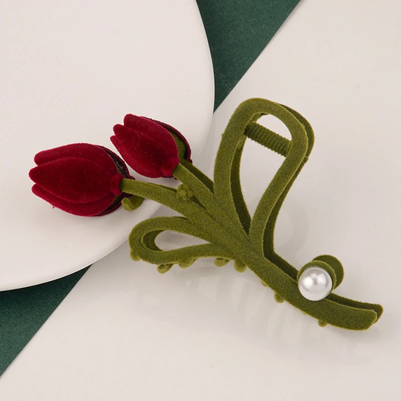 Made with high-quality materials, this durable and strong hair clip boasts a fine and comfortable texture that makes it a perfect companion for your hair. The unique flocked tulip design, combined with an innovative shark clip shape, showcases your unique taste while ensuring your hairstyle stays securely in place. The charming pearl accents add a sweet, girlish touch to the overall design, making it an irresistible choice for fashion-forward individuals.