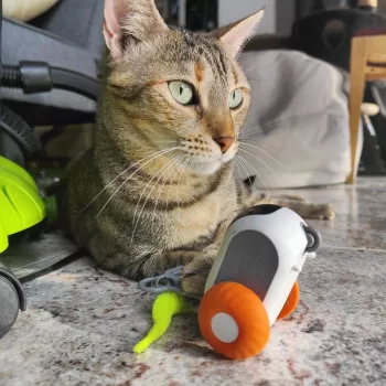 Wow! This remote control cat toy is amazing. My kitty loves chasing it around all day, keeps her entertained and active. 🐱🏎️
