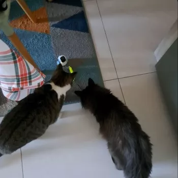 Cool crazy toy, cats quite surprised but maybe they will master it;)