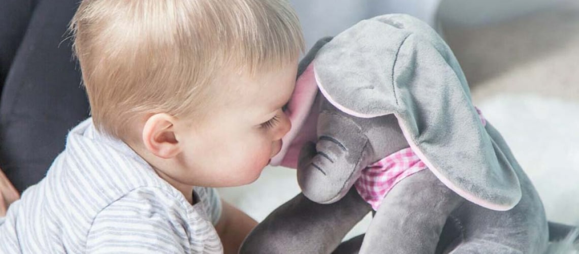 One of the largest, strongest animals in the animal kingdom sizes down to be a soft, cuddly friend to your little child. Our Peek-A-Boo Elephant Toy sings and interacts with your loved one for comfy, safe companionship while you’re busy doing housework or working.